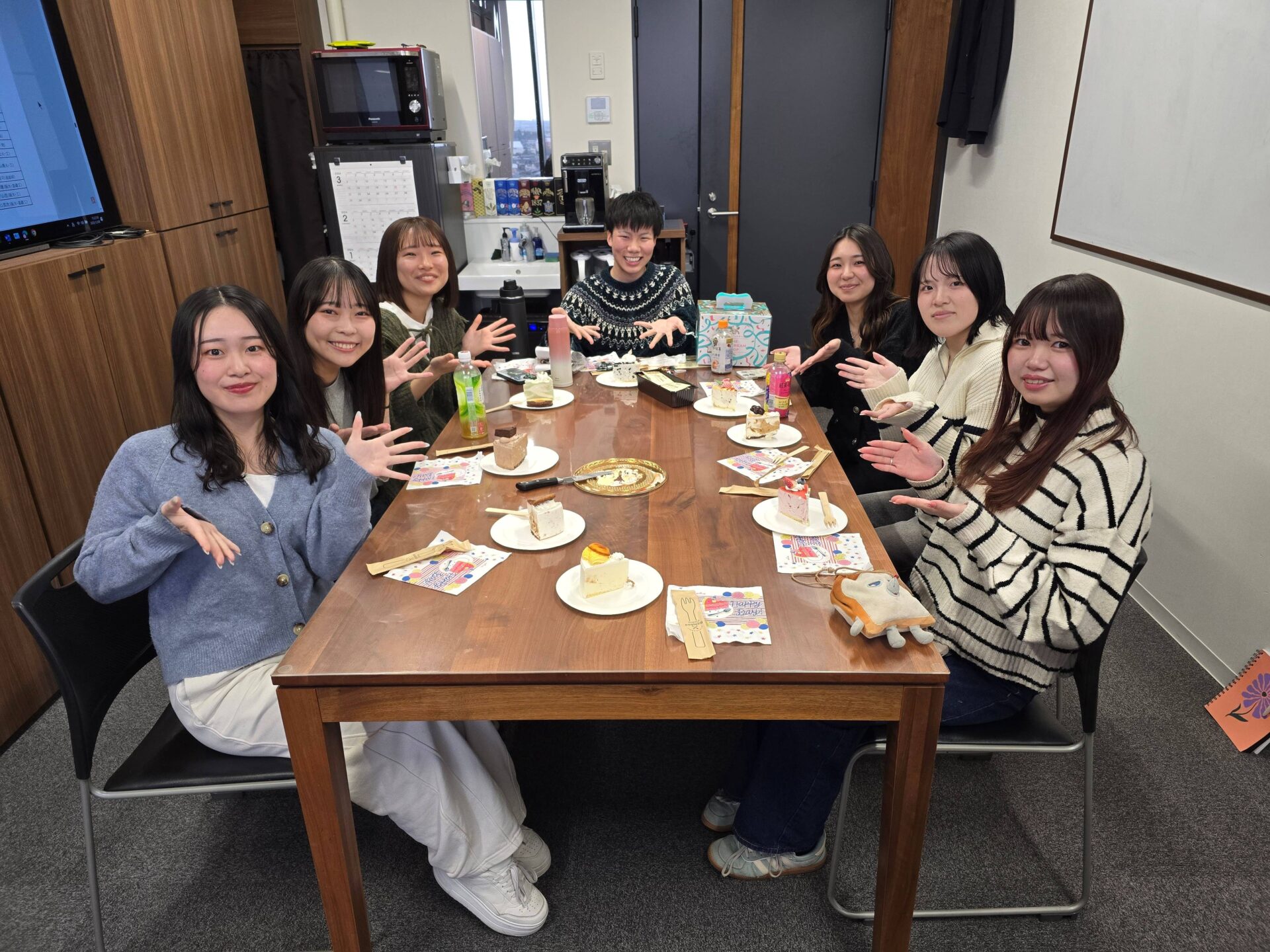 チームワークもケーキも甘くて最高!笑顔あふれる研究室。